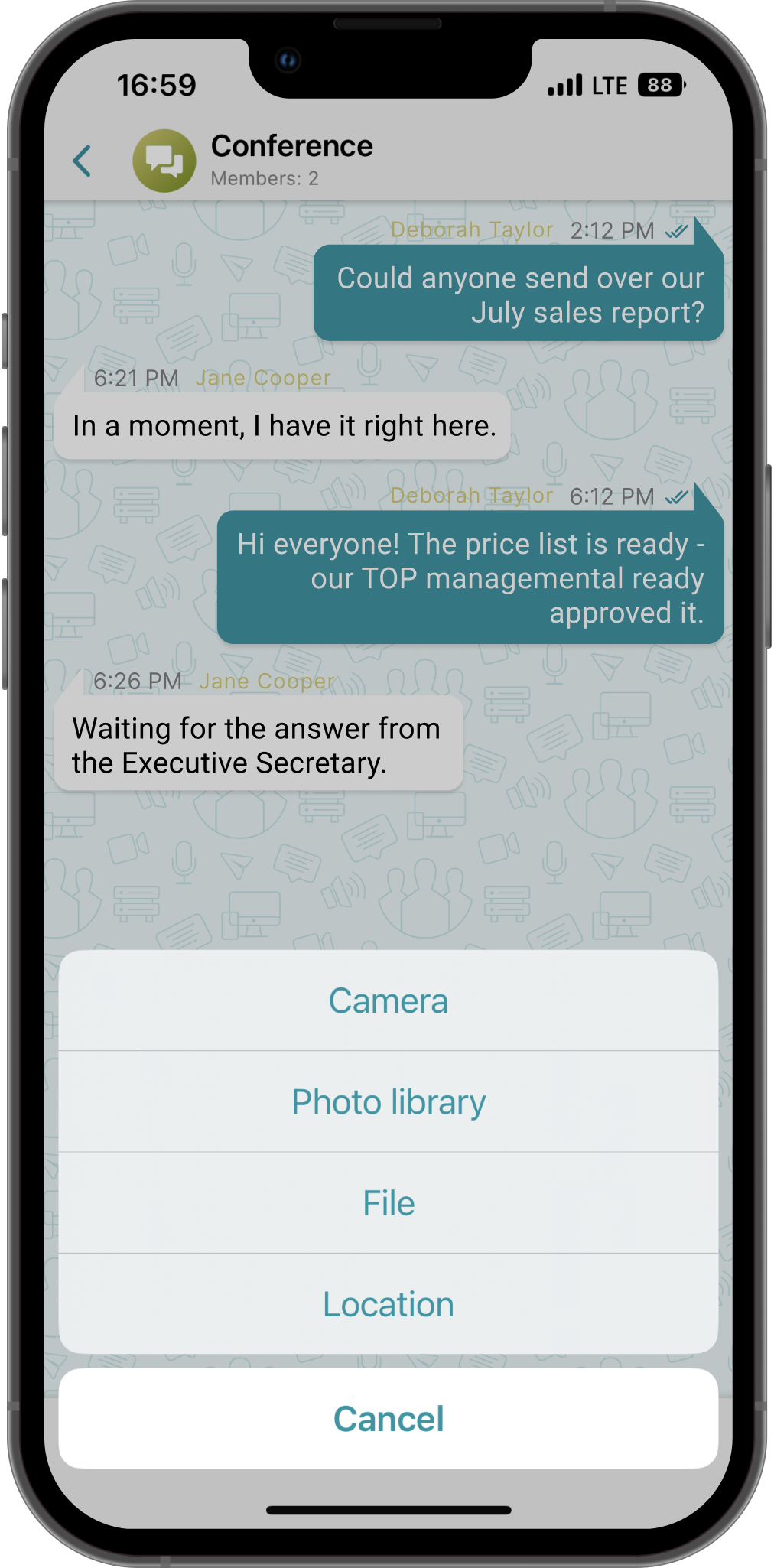 TrueConf 3.4 cho iOS: Chế độ chỉ chia sẻ tệp và âm thanh.